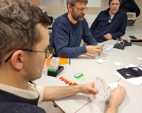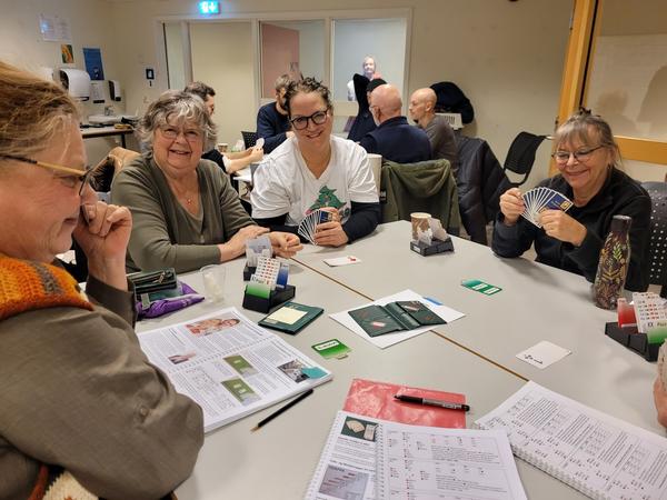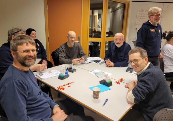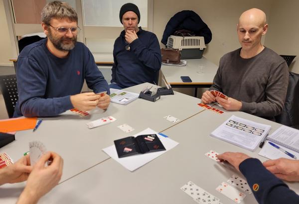 De to første kurskveldene (av 10) har Morten vært bridgelærer, og Marianne Grydeland har vervet og ledet veilederkorpset slik at det alltid er 1 veileder ved hvert spillebord. Totalt 20 deltagere, hvorav 13 er helt nye ansikter i klubben.