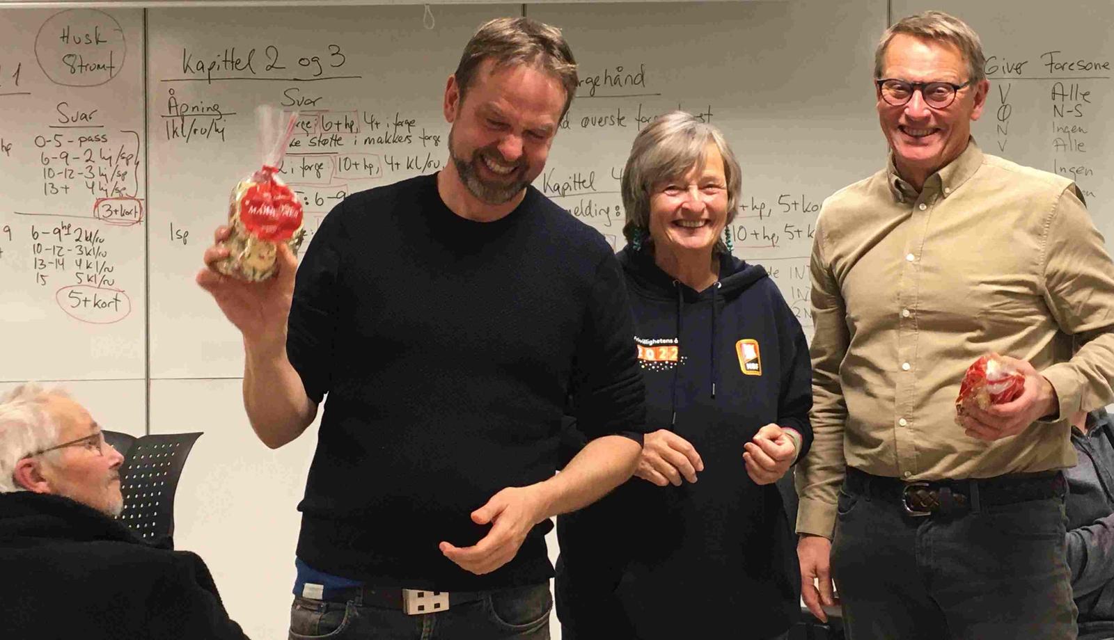 Smaken på å vinne premie fikk de allerede på nybegynnerkurset (bildet), der den smittende gleden fra Øyvind og Einar S "infiserte" alle! Det tok to år før de tok en overlegen seier på klubbkvelden sist tirsdag og vant med minst en mil foran de andre på lista!